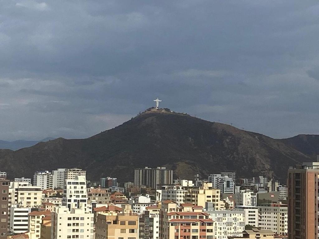 It takes approximately 5 minutes to travel from Jorge Wilstermann International Airport to Apartamento céntrico y lujoso.