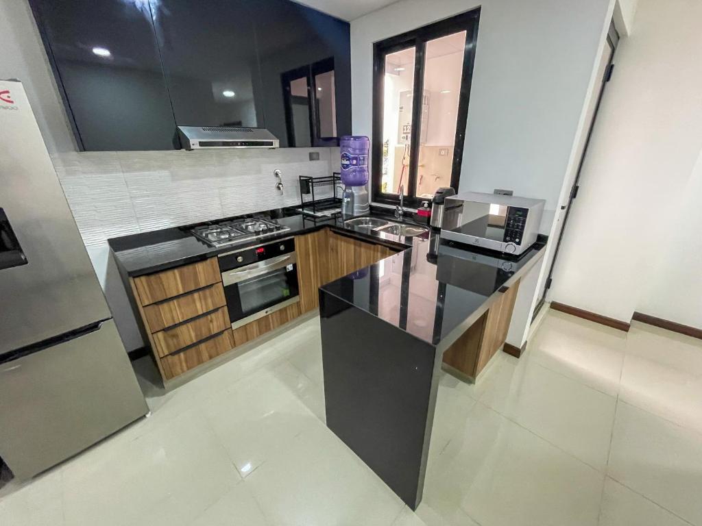 The distance from the center of Santa Cruz de la Sierra to the apartment is around 3.0 km.